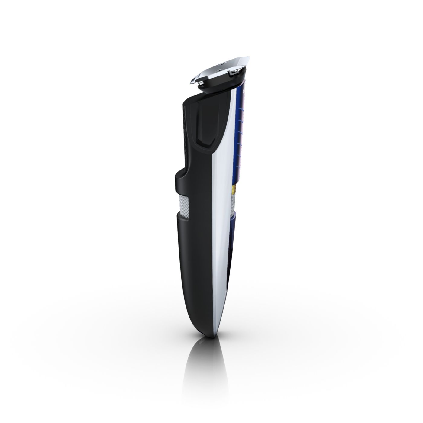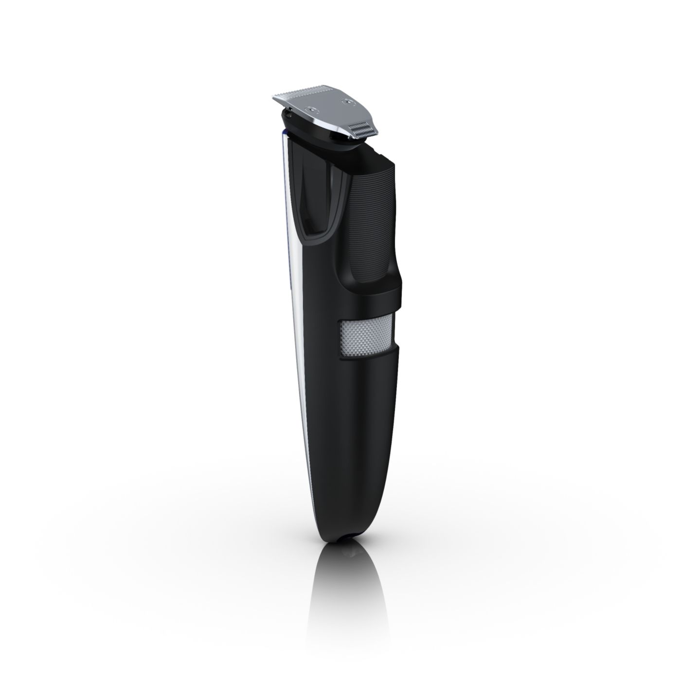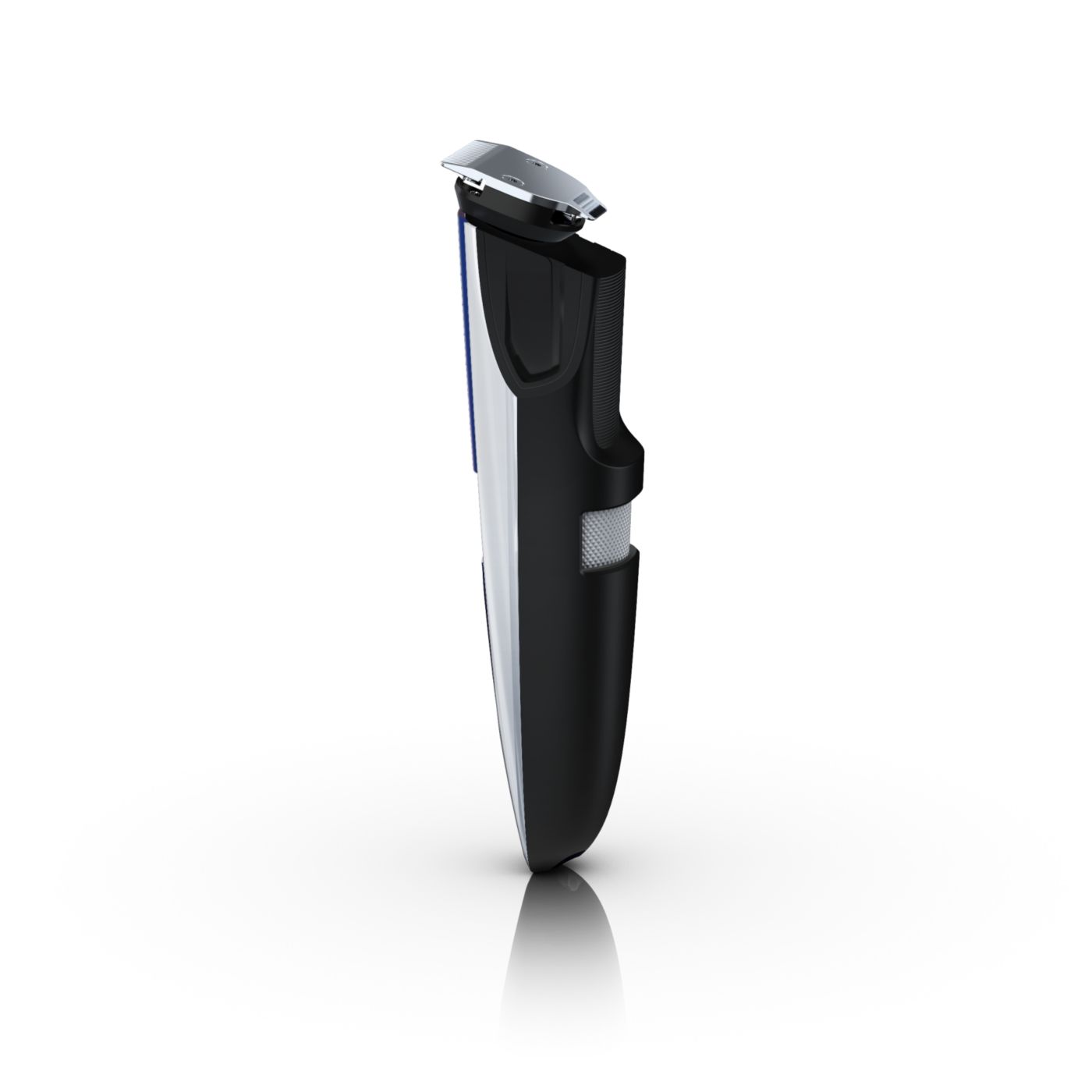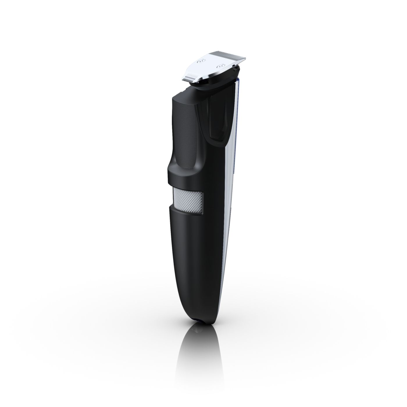 The dual-sided reversible trimmer gives you the versatility to create your unique look. On one side, the 1 17/64" (32mm) high-performance trimmer cuts very close while protecting your skin. On the other side, the 5/8" (15mm) precision trimmer creates a detailed look, even in those hard-to-reach areas like under the nose and around the mouth. The trimmer's small size and angled design make it easy to see what you are doing for accurate fine lines and details.