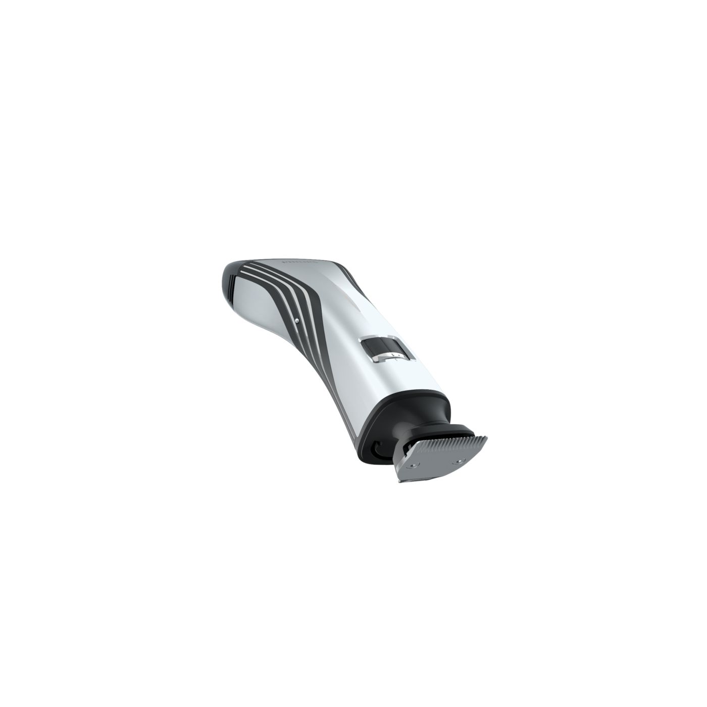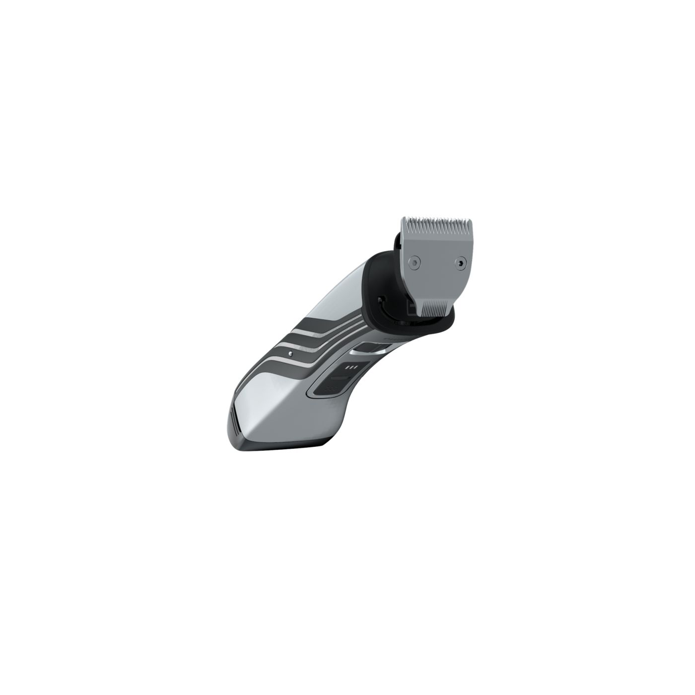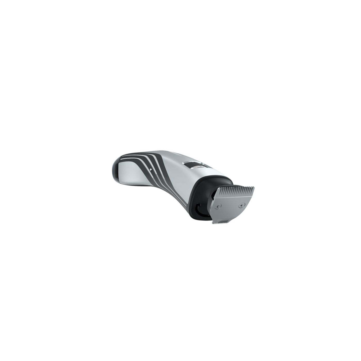 Take off the adjustable length comb, and there’s a reversible precision trimmer underneath. One side is a 32mm high-performance trimmer. Turn it around, and there is a 15mm wide precision trimmer – perfect for getting into small spaces, like under your nose or around your mouth. It's designed to cut very close while still protecting your skin, and it’s small size and angled design make it easy to see what you are doing for fine lines and details.