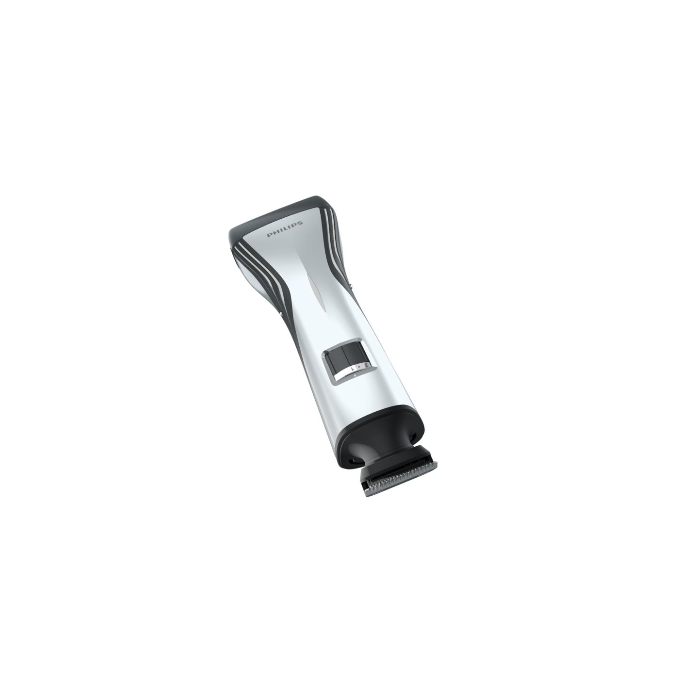 A full size (32mm) Philips beard and stubble trimmer with 12 adjustable length settings from 0.5mm to 10mm makes it easy to get exactly the length you want. Turn the wheel to lock-in your perfect length setting. The durable metal trimmer with skin-friendly rounded edges guarantees a precise and even trim.